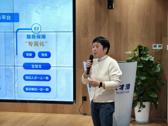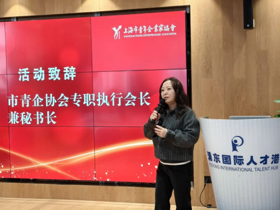 浦东国际人才发展中心主任黄逸飞向到场嘉宾表示欢迎。她介绍,浦东国际人才港是一个为海内外人才发展打造的综合性枢纽服务平台,覆盖各项功能、打造一站式落地服务、提供专属化保障,构建高效闭环的人才服务生态,持续助力人才与企业需求精准对接。她强调,未来期待与市青企协共同协作,做好青年创新创业人才的全方位支持工作。