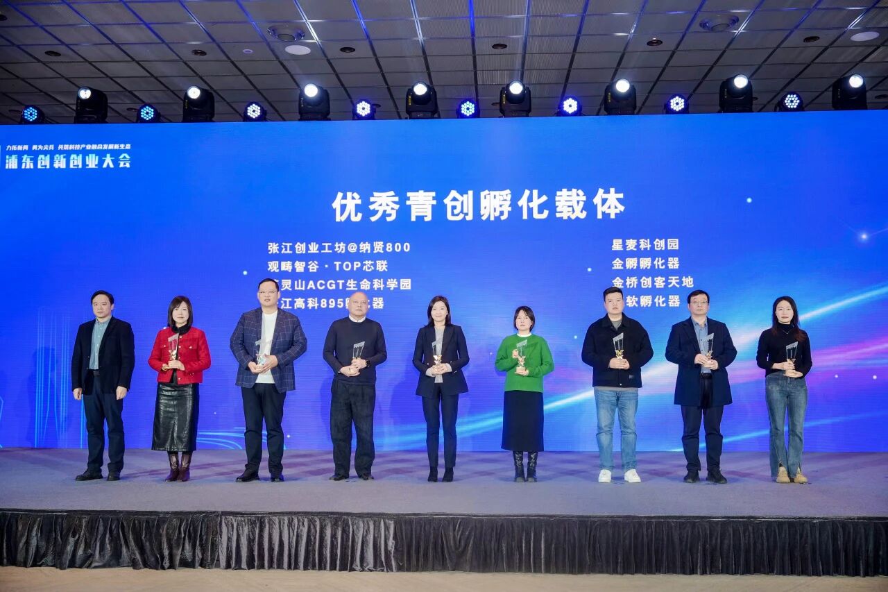 本次大会上,“优秀青创孵化载体”奖项揭晓,张江创业工坊@纳贤800、观畴智谷•TOP芯联、药灵山ACGT生命科学园、张江高科895孵化器、星麦科创园、金孵孵化器、金桥创客天地、浦软孵化器等8家孵化器获奖。