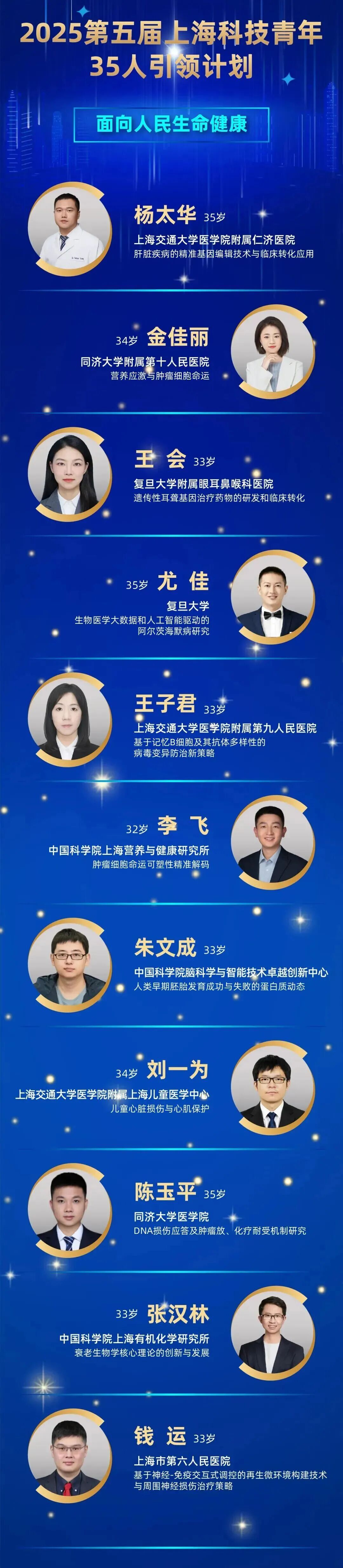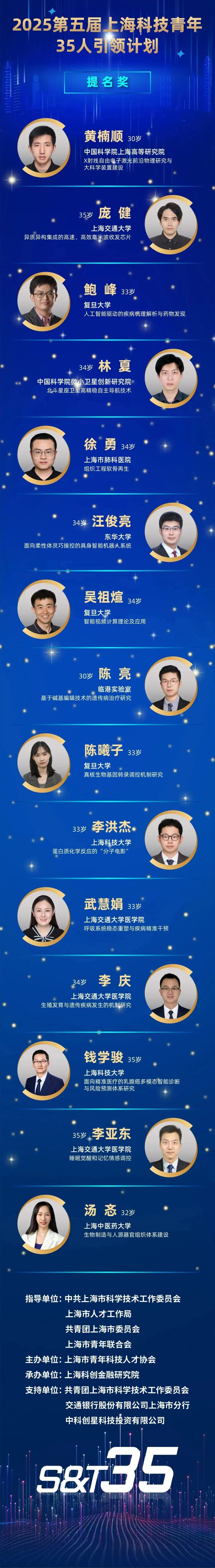 2025“上海科技青年35人引领计划”获奖名单↓↓↓