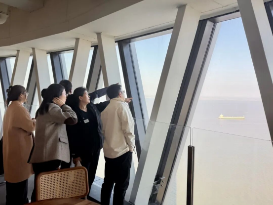 如果说宝钢之行聚焦产业硬核需求,那么长滩观光塔上的远眺则拓展了合作视野的维度。登临180米高空,邮轮滨江带的生态景观与产业园区的建设热潮尽收眼底。亚洲最大邮轮母港的吴淞口国际邮轮港内,爱达魔都号邮轮正静泊江畔,呈现出邮轮产业、滨水生态与城市生活有机融合的生动图景,展现出宝山在推动产业升级与城市更新中的前瞻布局。