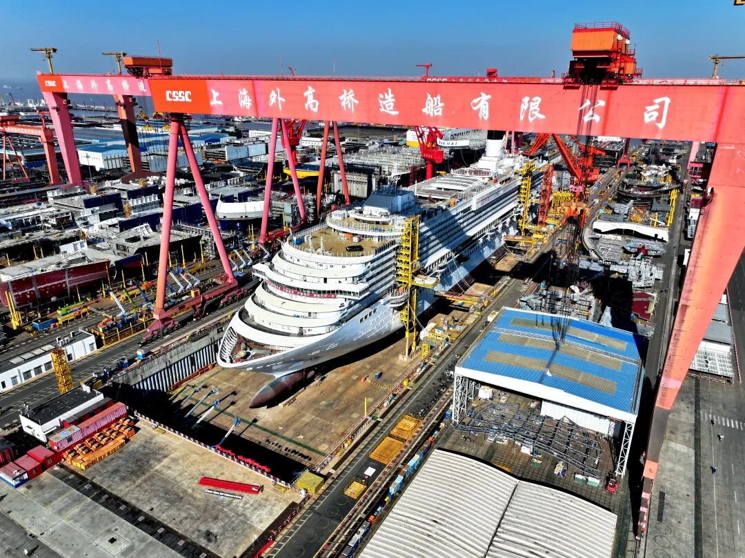 5年深耕,外高桥造船在主营产品领域实现全方位飞跃,建成全球独一无二的邮轮、民船、海工三型主力产品自主设计建造总装能力矩阵,并且联动配套供应链、技术服务链,搭建起集设计、建造、标准输出于一体的产业协同生态,完成从单一产品领跑者到全产业生态系统构建者的进阶。
