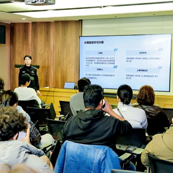 “在上海工作需要哪些许可?居留证件办理有哪些注意事项?”针对外籍学子最关心的在沪发展核心问题,《融无界・创未来・在三江——外籍人才在沪工作政策宣讲》环节精准破题。区人才发展服务中心与区出入境管理支队的工作人员化身“政策讲解员”,分别详解了外国人来华工作许可、居留许可的申请流程、材料清单及最新便利政策。为进一步强化服务精准度,活动现场特别设置专属咨询摊位,为人才提供一对一解答,让政策红利精准对接个体需求。