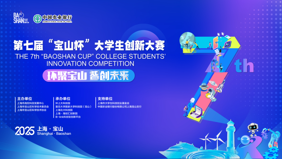 近日,第七届“宝山杯”大学生创新大赛总决赛暨颁奖仪式在宝山科创人才港成功举办。本届大赛以“环聚宝山 智创未来”为主题,由上海市高校科技发展中心、宝山区科学技术委员会、宝山区科学技术协会共同主办,环上大科技园、复旦大学国家大学科技园(宝山)、上海北大科技园、上海·海创汇创新园、B-link科创宝创新平台联合承办,并得到了上海市大学生科技创业基金会、农业银行上海宝山支行的支持。