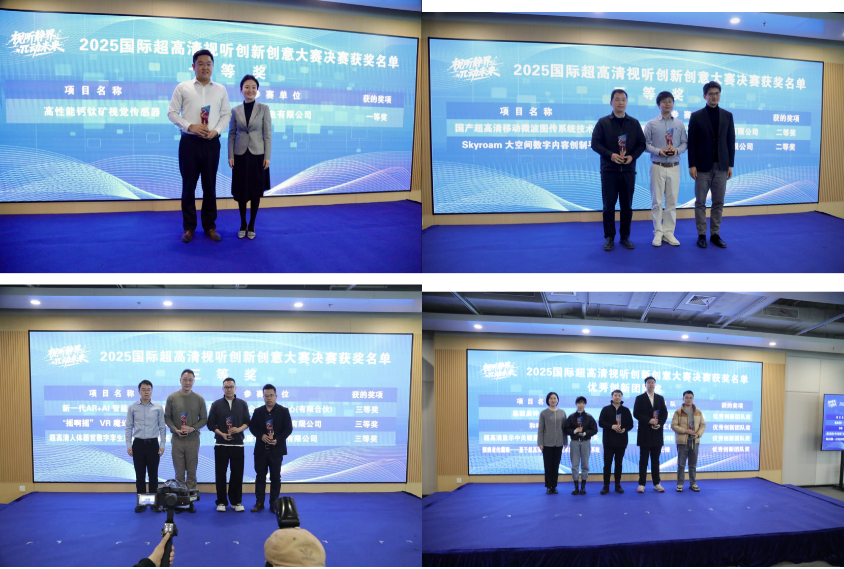 活动现场还举行了2025国际超高清视听创新创意大赛颁奖仪式,龙婉丽、胡勇等分别为获奖项目团队颁奖。获奖代表上海创享灵境视觉科技有限公司进行案例分享,为行业创新实践提供了有益借鉴。