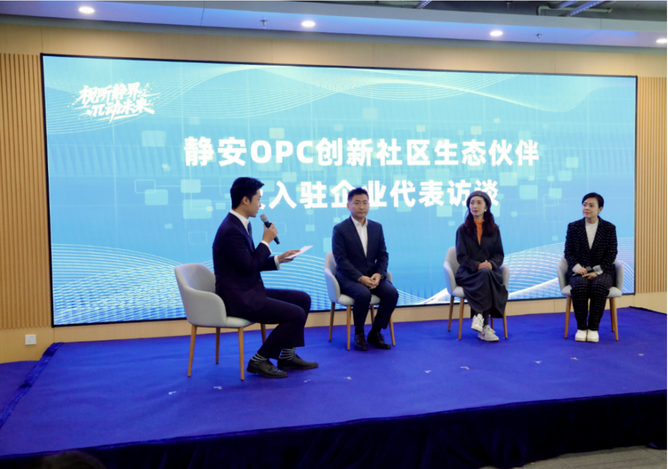 为助力AI视听领域创新主体成长,活动现场对近期发布的静安OPC创新社区政策进行了解读;SMG主持人陈辰、小红书内容创作者霞飞巷的邱小姐及上海一起闹海人工智能科技有限公司联合创始人、总导演王霆作为活动嘉宾,分享了对未来的期许。