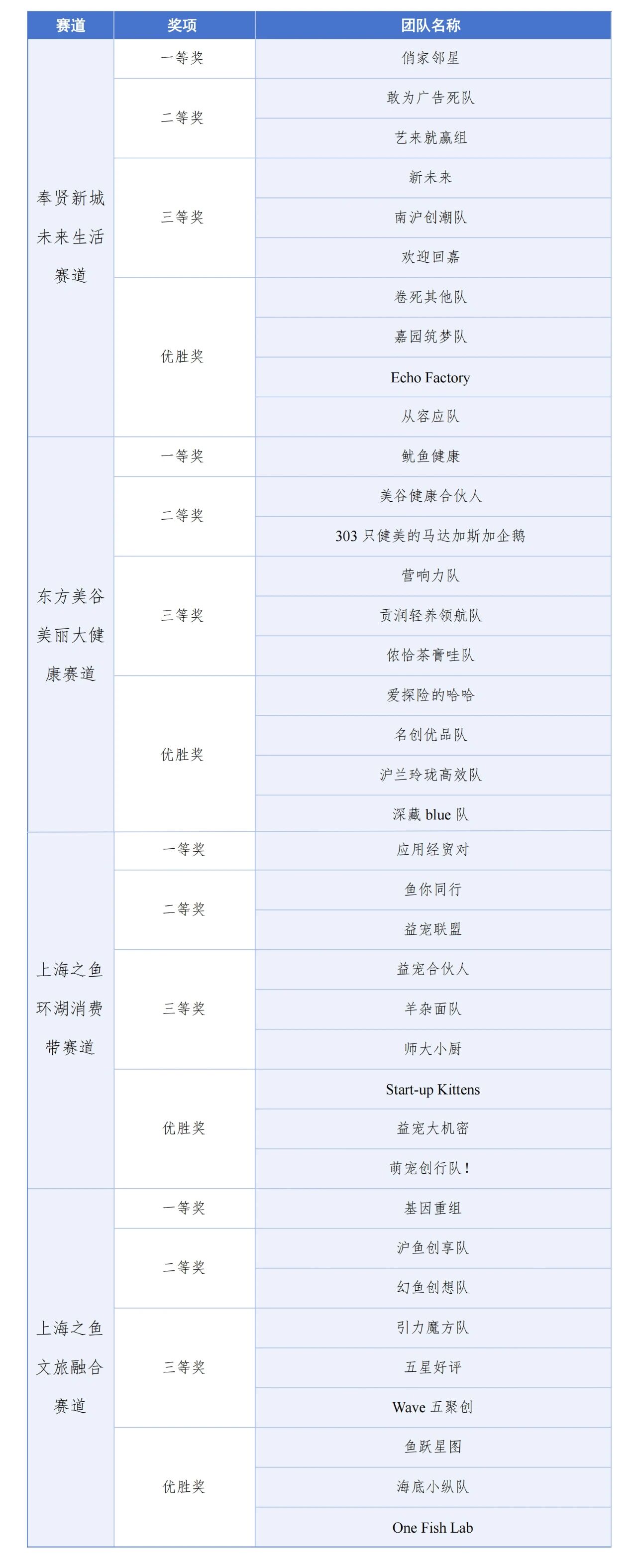 获奖名单