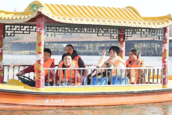 大家或搭乘复古小火车穿梭于田园林间,或漫步东湖游览区,或走进生态采摘园,或体验游船、射箭等特色项目。轻松愉快的氛围让“大后方”倍感温暖,同游互动间也进一步增进情谊,更近距离触摸崇明绿色发展的生动实践。