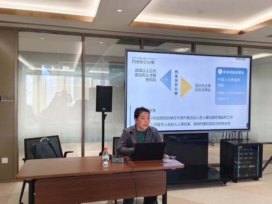 培训中,区人才服务中心人才服务专员围绕“人才引进业务中人事档案相关注意事项”展开解读。内容涵盖档案在人才落户中的重要作用、材料规范、常见问题及档案移交与管理的注意事项。此外,人才服务专员还结合过往落户申请中的实际案例,对档案审核中易出现的材料缺失、转递方式不当、信息不一致等问题提供应对建议,协助企业规范档案管理,提高档案审核速度和通过率,确保人才档案材料的完整性与有效性。