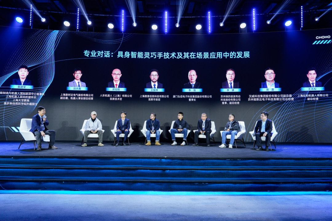 机器人的发展,不单是“硬件+软件”的加法,更是整合资源、协同研发、优势互补的跨行业联动。现场,智元机器人、卓益得机器人搭载“臻手·CHOHO Hand”完成了互动展示、递水演示以及台下近距离静态展示。这意味着征和工业提出的“链动真实场景,满足极致追求”不仅是口号,更是多生态联动、跨产业融合的未来发展方向的具象显现。