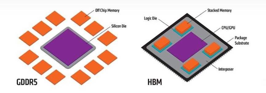 在以上种种技术的加持下,HBM的速度可以达到传统单层内存的几倍至几十倍,同时单位带宽功耗降至传统方案的一半以下。传统模式下,AI芯片如GPU,周围可能会配置十数颗内存元件,不仅整体排布尺寸无法缩小,还需要更大的电压调节模块;而采用了HBM后,由于一颗HBM可以承担几个到十几个内存部件的功能,GPU周围排布的元件数量就大大减少,不仅数据传输更快,还有体积小、低能耗的优势。