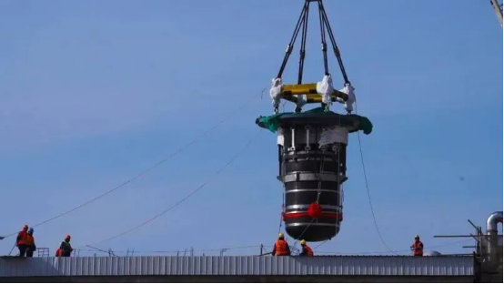 钍基熔盐堆堆本体吊装。中国科学院上海应用物理研究所供图
