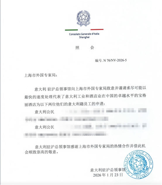 近日,意大利驻沪总领事馆专程致电宝山区人才工作局,并向上海市外国专家局发来感谢信,对宝山区优质高效办理意大利籍员工来华工作许可证一事致以诚挚谢意。这份跨越国界的认可,既是宝山区人才工作局收获的特殊“开年礼物”,更成为2026年宝山优化国际人才生态的首个温暖注脚。