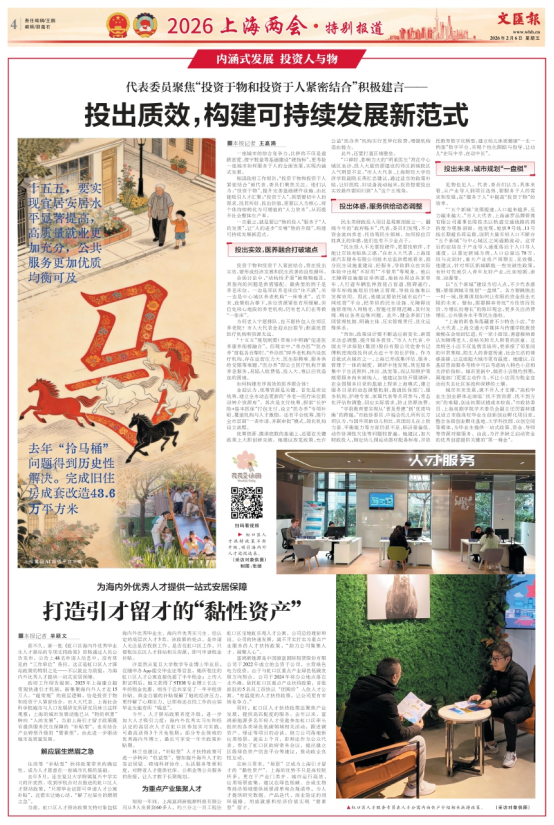 政府工作报告提到,2025年上海建立超常规快速引才机制,新集聚海内外人才近15万人。“超常规”的底层逻辑,恰是投资于物和投资于人紧密结合。市人大代表、上海社会科学院城市与人口发展研究所研究员林兰这样观察:上海的城市发展动能已从“物的积累”转向“人的发展”,当前上海引才留才政策既有提供服务民生保障的“补贴型”,也有结合产业转型升级的“要素型”,由此进一步驱动城市高质量发展。