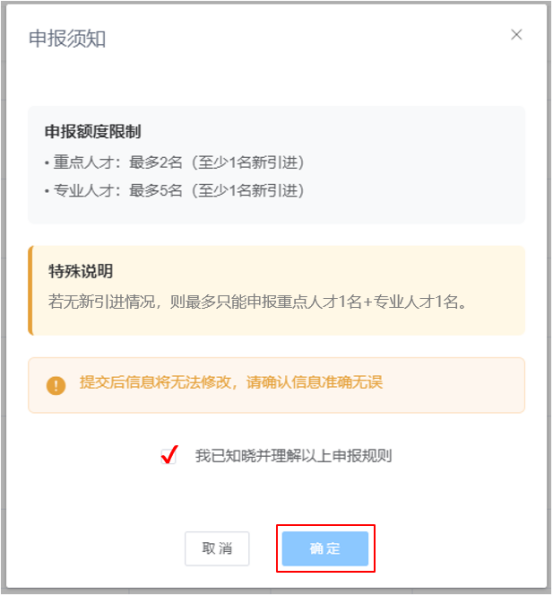 用人单位可保存多条人才申报信息,但每批次提交的人才申报数量,须符合一定的额度限制: