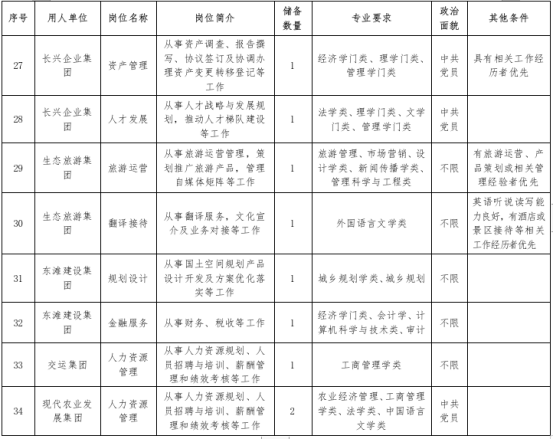 崇明区部分党政机关、区属企事业单位推出的34个储备人才职位,详见附件。