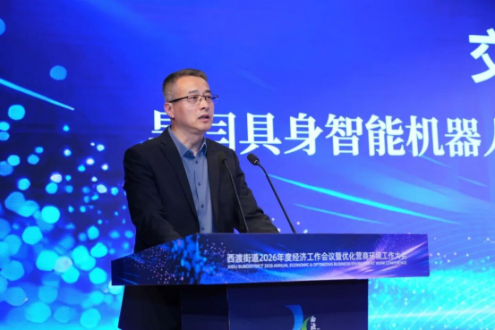 西渡街道党工委副书记、办事处主任涂军平作经济工作报告,他表示,2025年西渡街道经济总量实现“新”跨越,转型发展取得“新”突破,未来产业彰显“新”优势,营商环境取得“新”成效,2026年更要围绕四个“抓”,以硬核实绩书写经济答卷,一是抓招服一体,聚八方英才、引四海项目,健全项目全生命周期服务体系;二是抓双轮驱动,坚持制造业与服务业协同发力、双轮驱动,做大做强制造业,做优做精生产性服务业,提质升级生活性服务业。三是抓科创赋能,聚焦具身智能等未来赛道,推动高新技术企业、科技小巨人企业量质双升,深化政产学研用深度融合,加速科技成果从“实验室”走向“生产线”。四是抓要素保障,精益求精优化营商环境,持续擦亮“西引力·渡无忧”营商环境特色品牌,重点打造营商环境“六边型生态”项目,提升“全要素生产率”。