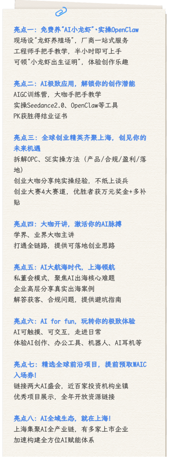 无论你是深耕技术的开发者,还是拥抱梦想的创业者,或是渴望尝试“养虾”的普通人,都能在这场盛会找到属于自己的入口。