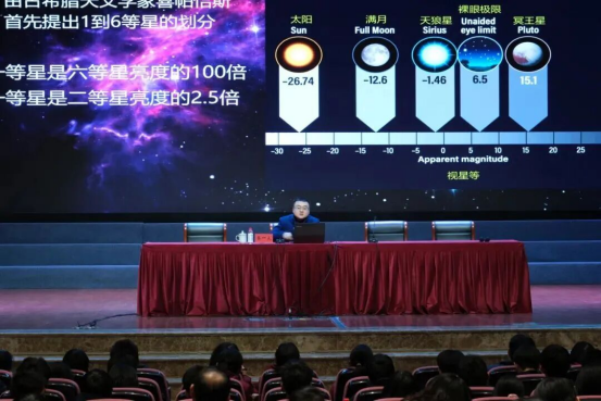 第二部分,聚焦“宇宙度量衡”,蔡教授详细阐释了视星等与绝对星等的概念差异,并通过中国古代天文史中的“客星事件”展开科普——宋朝记载的异常天象超新星爆发,其物质累积至钱德拉塞卡极限时引发的剧烈反应。这一历史与科学的交汇点,让同学们深刻体会到中华文明对天文学的贡献及科学探索的传承意义。