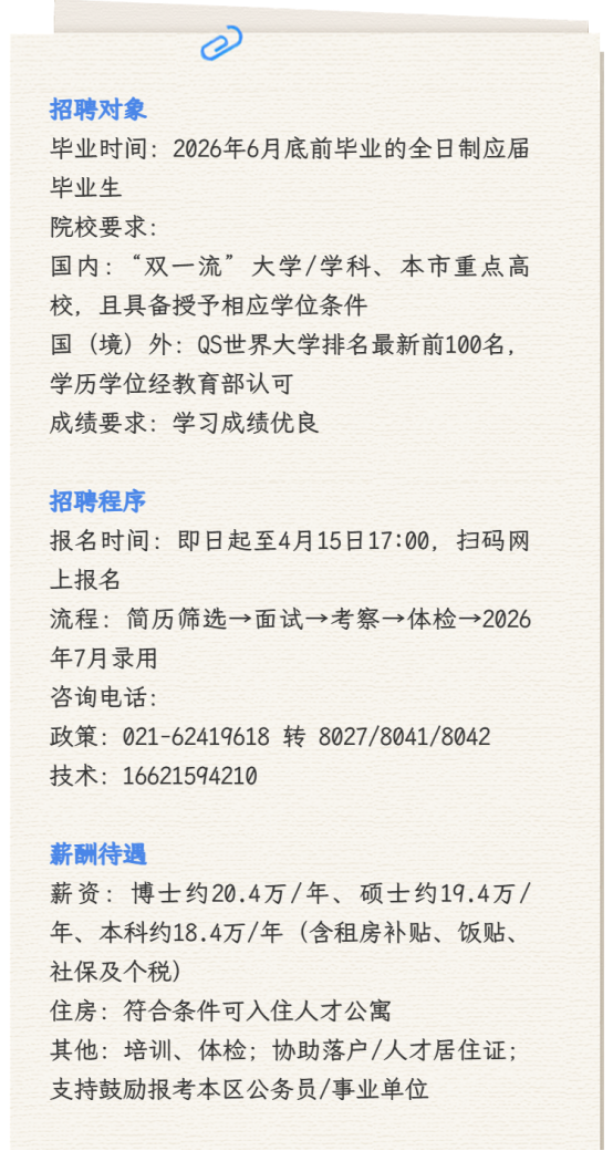 长宁 | 2026年度储备人才招聘工作启动,4月15日前报名→
