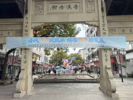 3月21日下午,春风轻拂青溪老街,一场以“春风送岗促就业 精准服务助发展”为主题的2026年春季促进就业专项行动——奉贤区“春风行动”青村镇专场招聘会在此温暖启幕。