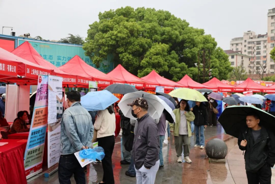 活动现场骤雨未歇,绵雨不断,却丝毫未减求职者的参与热情。他们纷纷冒雨来到展位前积极递交简历,抢抓就业机遇,工作人员耐心讲解岗位职责与薪酬福利。为延伸服务触角,同步开启现场直播带岗,实时连线企业,解读岗位信息,为求职者提供便捷咨询与简历投递通道,直播一小时浏览量达到5200余人次。活动两小时共吸引求职者7500余人次,收取简历720余份,初步达成就业意向310余人。